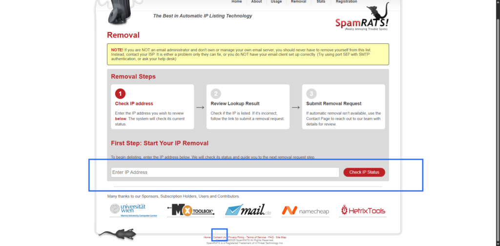 - If the Domain/IP is blacklisted, use the ‘Contact Us’ Page to reach out to the team with details for review.
