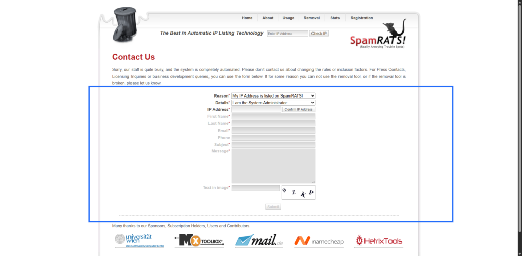 How to remove a Domain/IP address from SpamRats Dynamic?