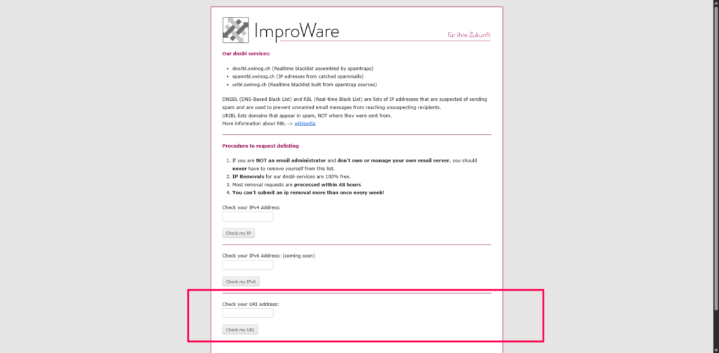How to remove a Domain/IP address from SWINOG RBL?