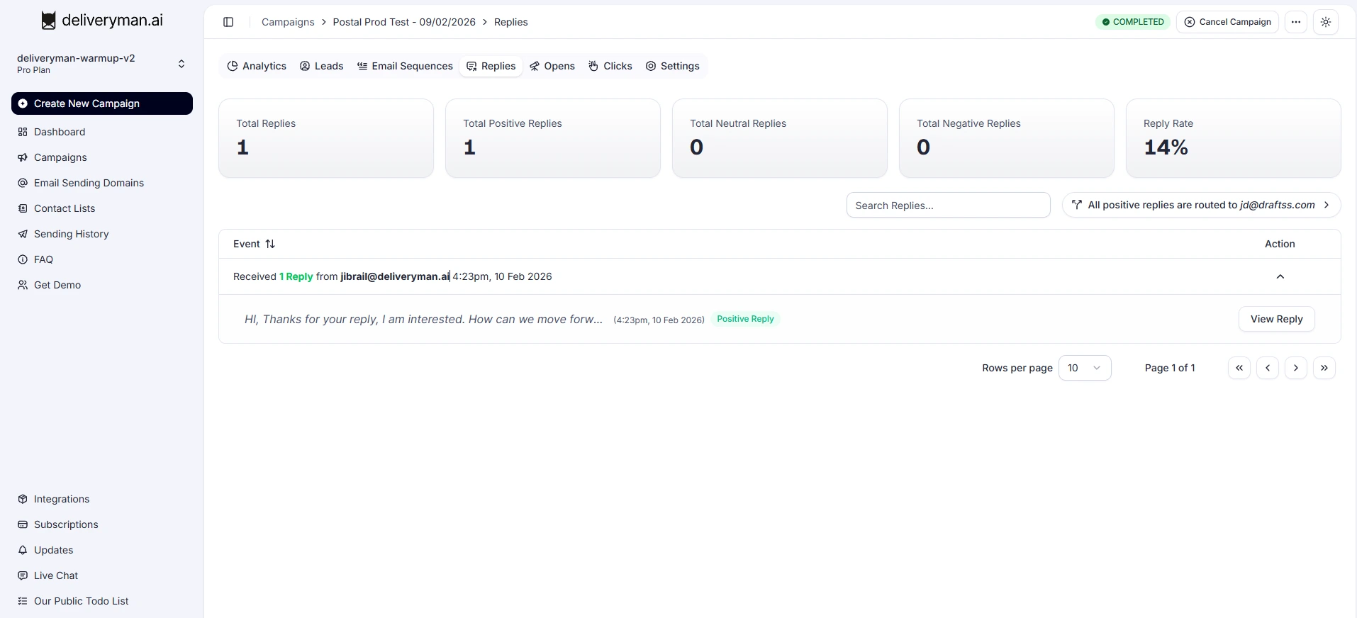 When someone shows interest asks for more details, wants a demo, or responds positively DeliverymanAI marks it as Positive so you can prioritize the lead right away.