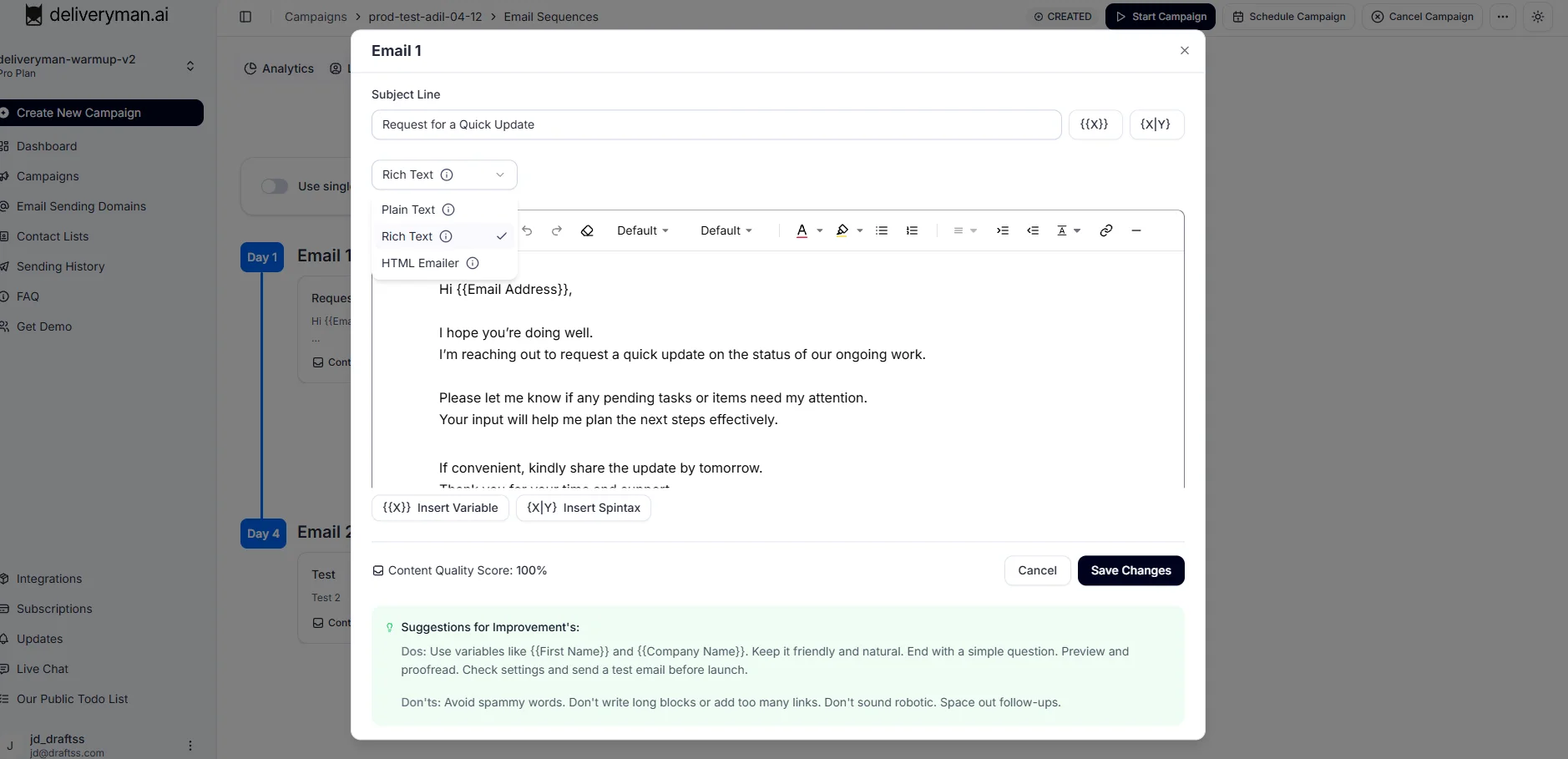 Content Spam Classification in DeliverymanAI helps you identify whether your email content is likely to be marked as spam before your campaign starts sending.