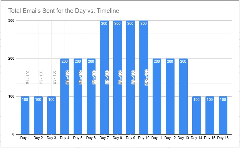 Day 1: Send emails to contacts 01–100 (Total Email send on day 1 is 100)