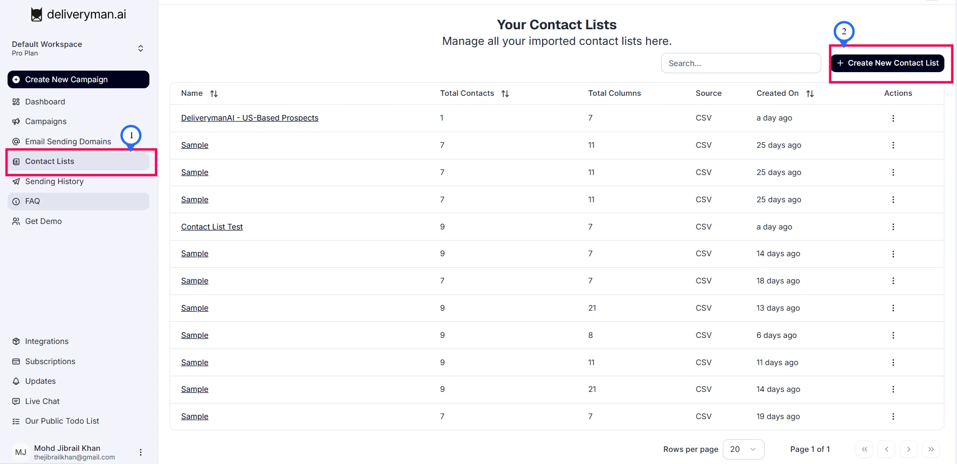 Go to Contact Lists from the dashboard sidebar and click Create New Contact List.