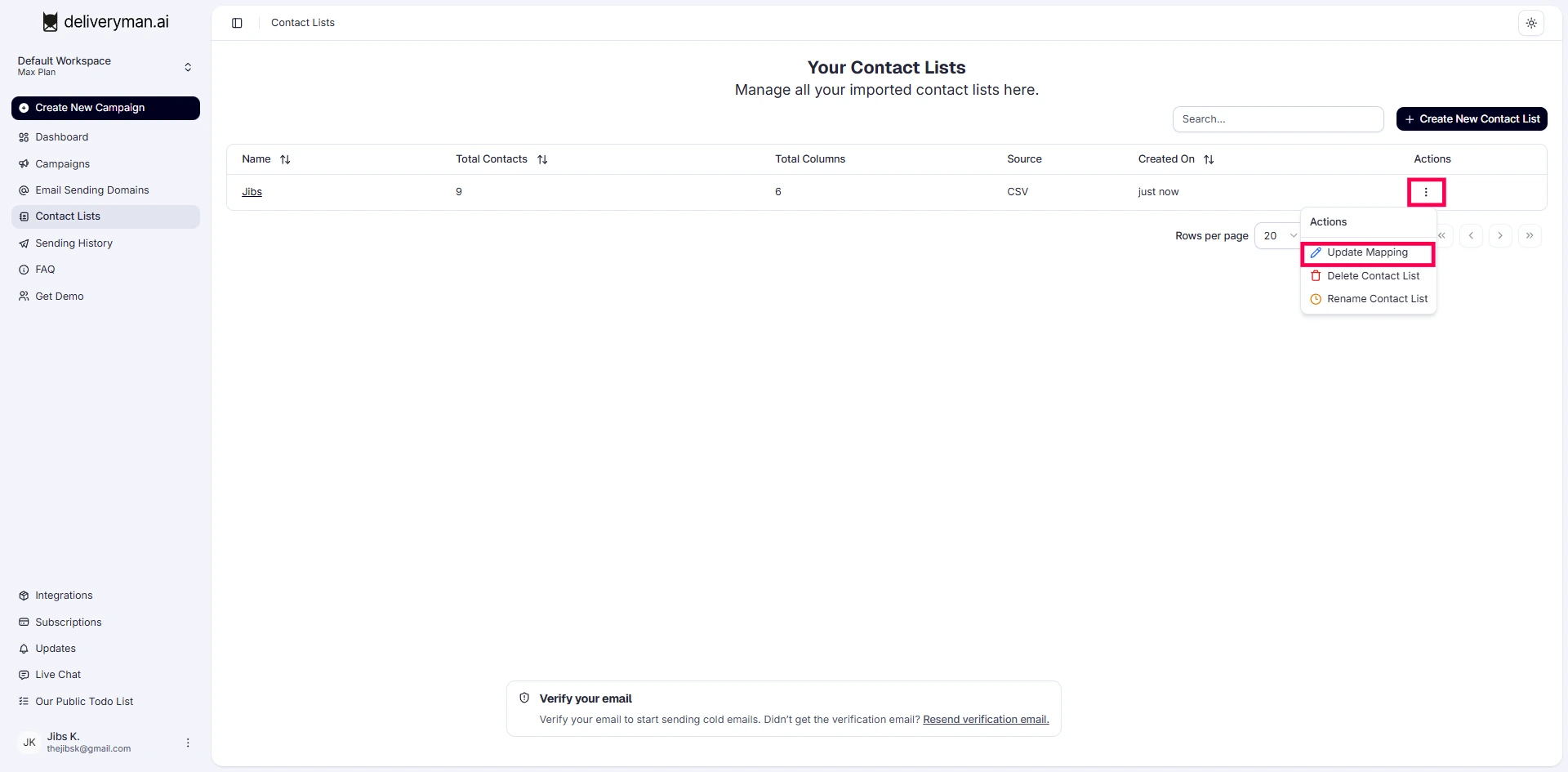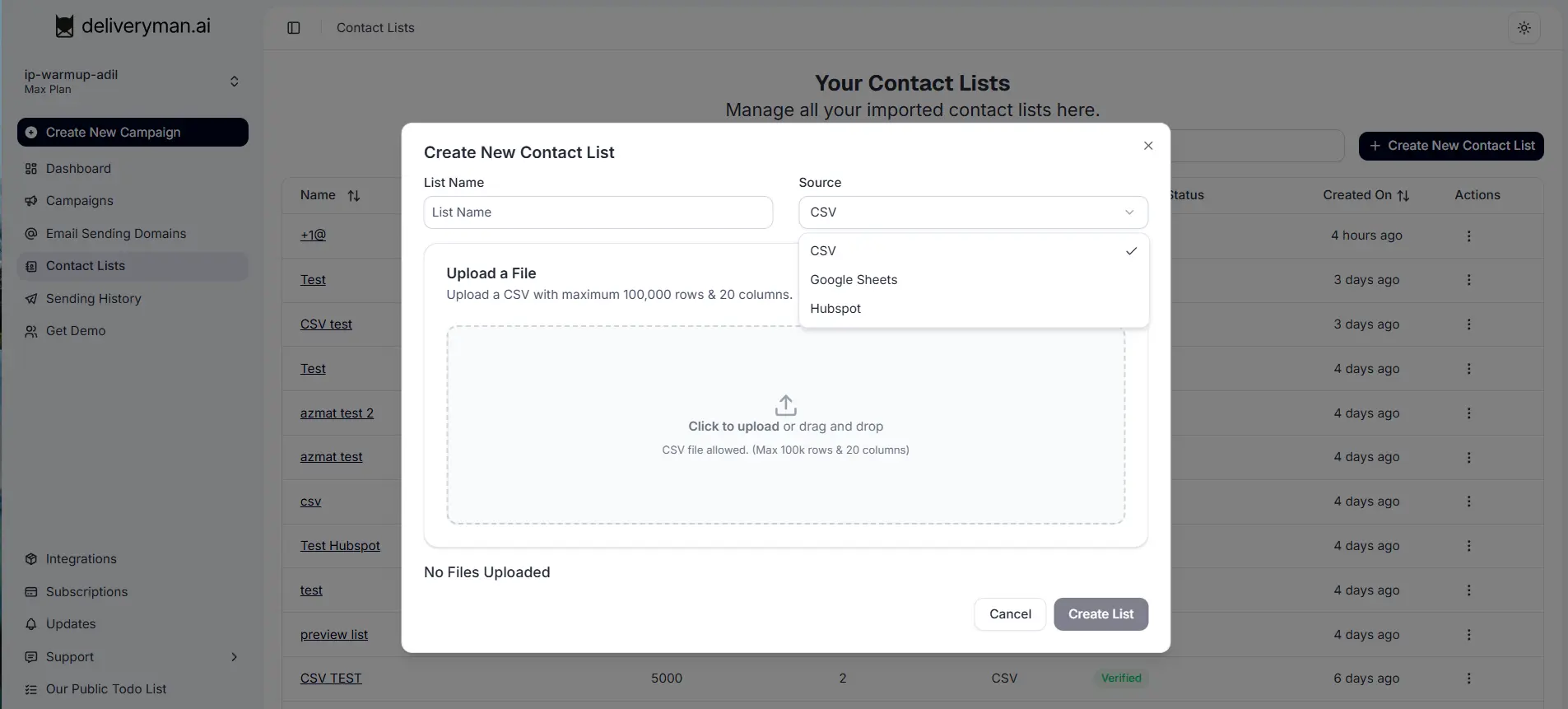 After you add your domain, the next step is to upload your contact list. This list has the people you want to reach through your cold email campaign. Once you upload it, we will verify and clean the contacts to make sure they are valid and ready to send.
